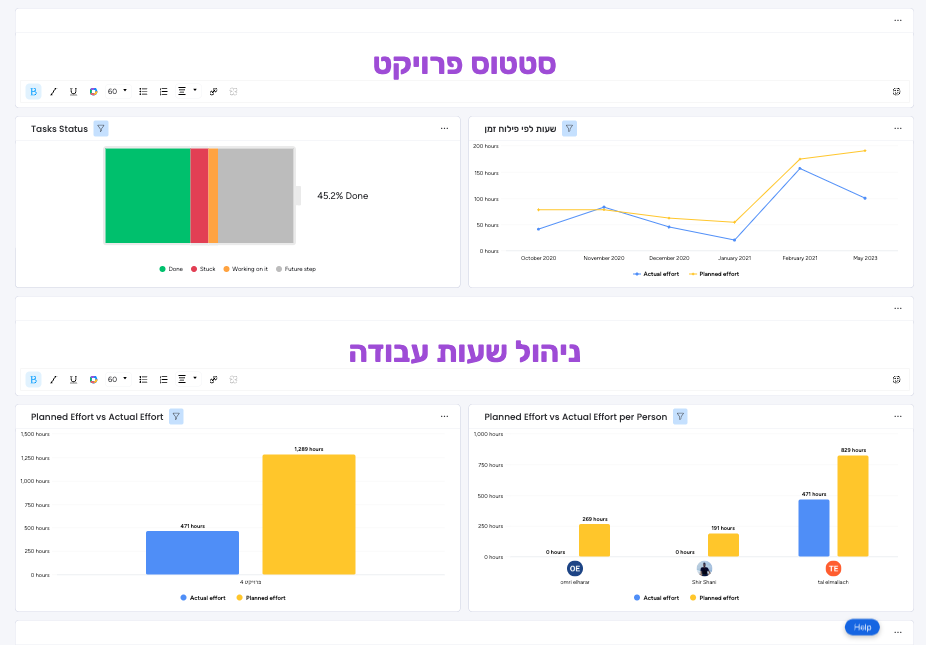 בעזרת דאשבורד טוב ניתן לראות הכול: מי עובד על מה, כמה נשאר בתקציב, מה נתקע, ומה אפשר לשפר.